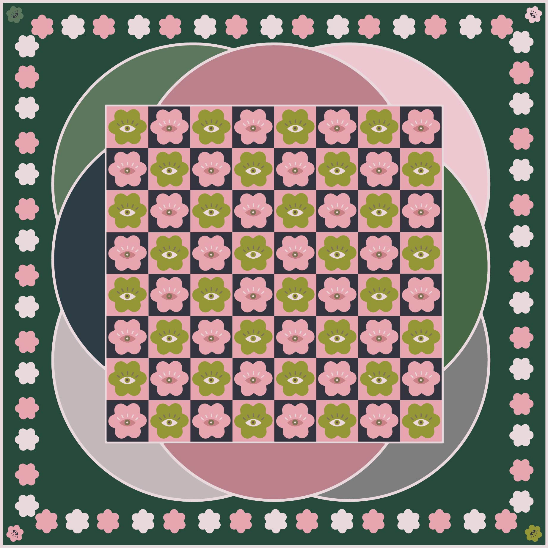 Curious Eyes - Matcha Sakura colorway, 65 cm Square Silk Scarf