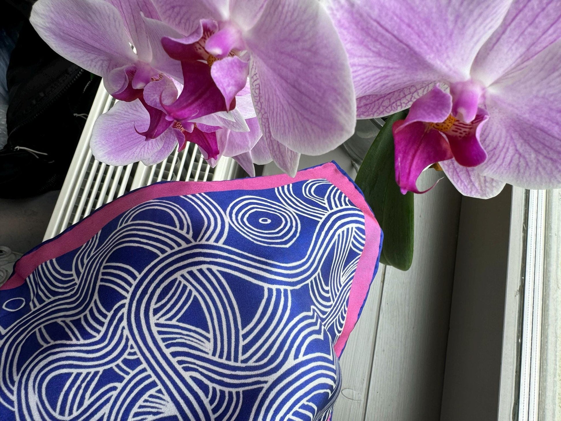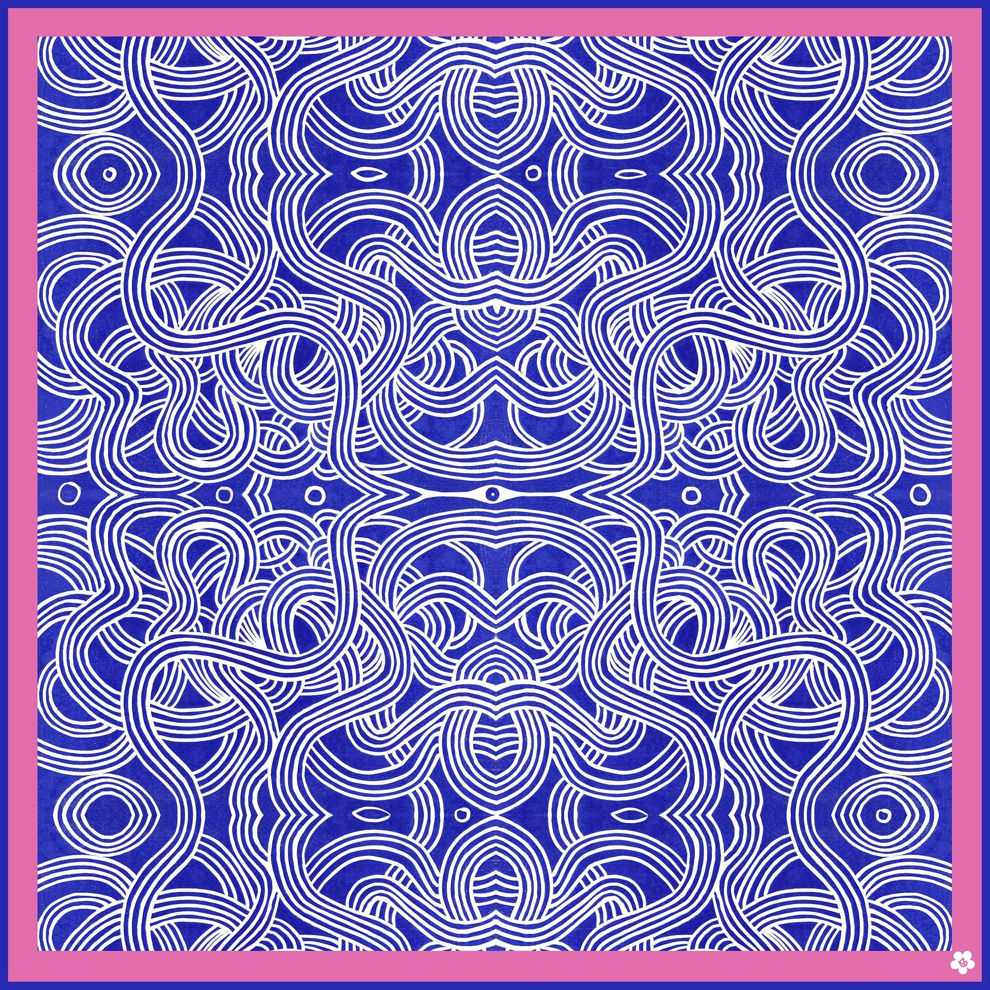 A small (40X40 cm) silk twill scarf in a pattern "Ramen” designed by Valeria Gulieva