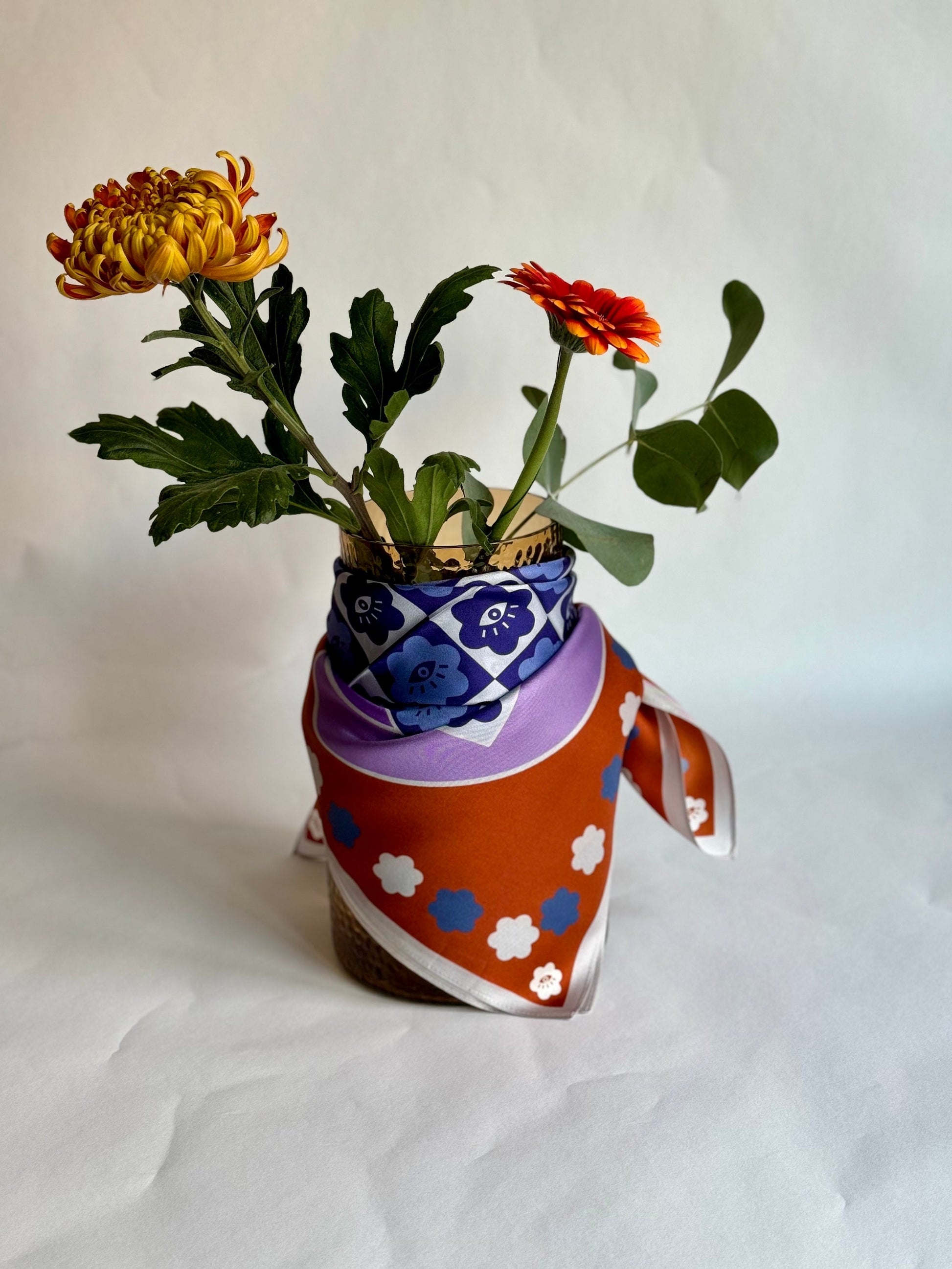 A medium (65X65) silk twill scarf in a pattern "Flower power” designed by Valeria Gulieva