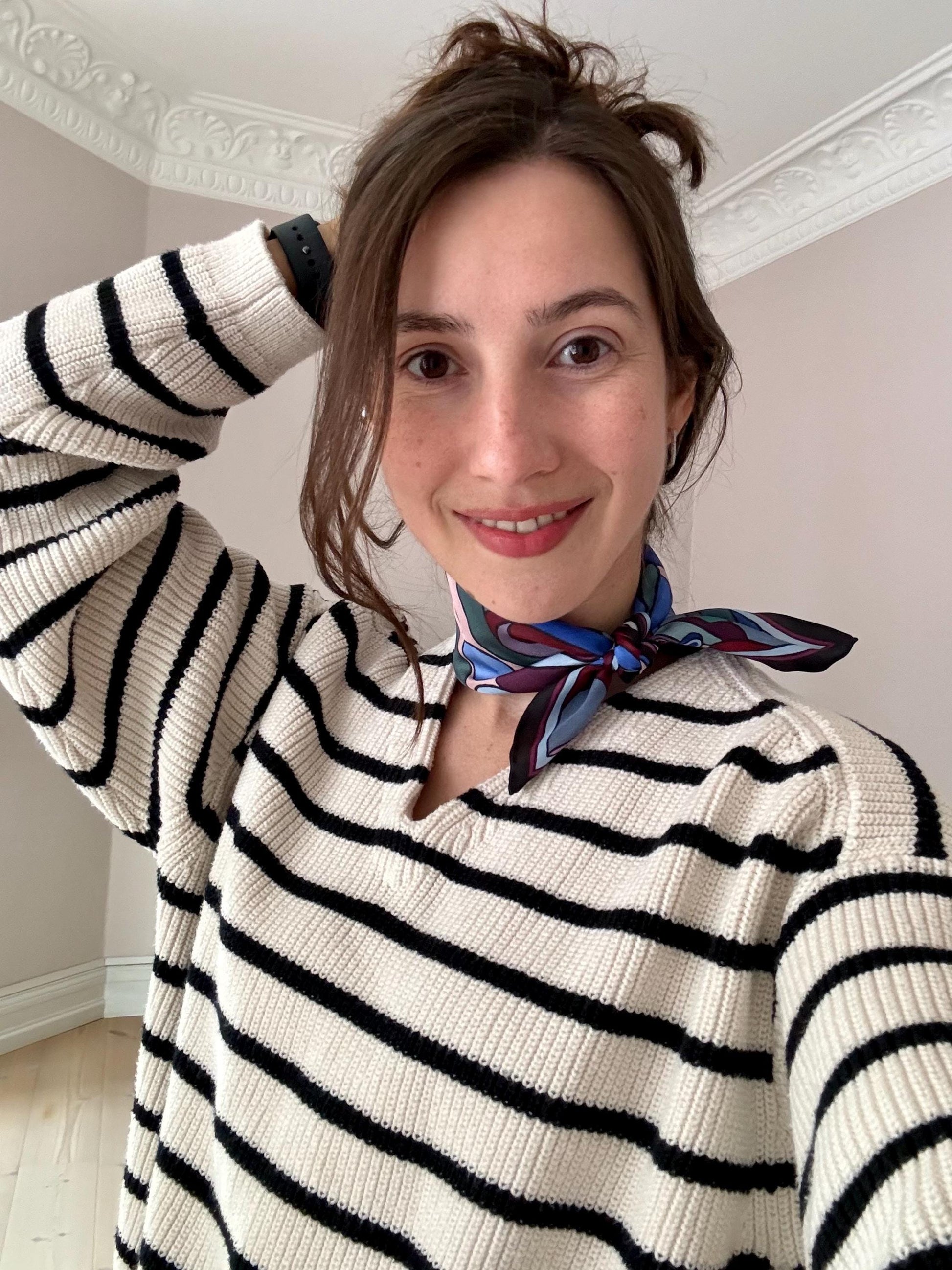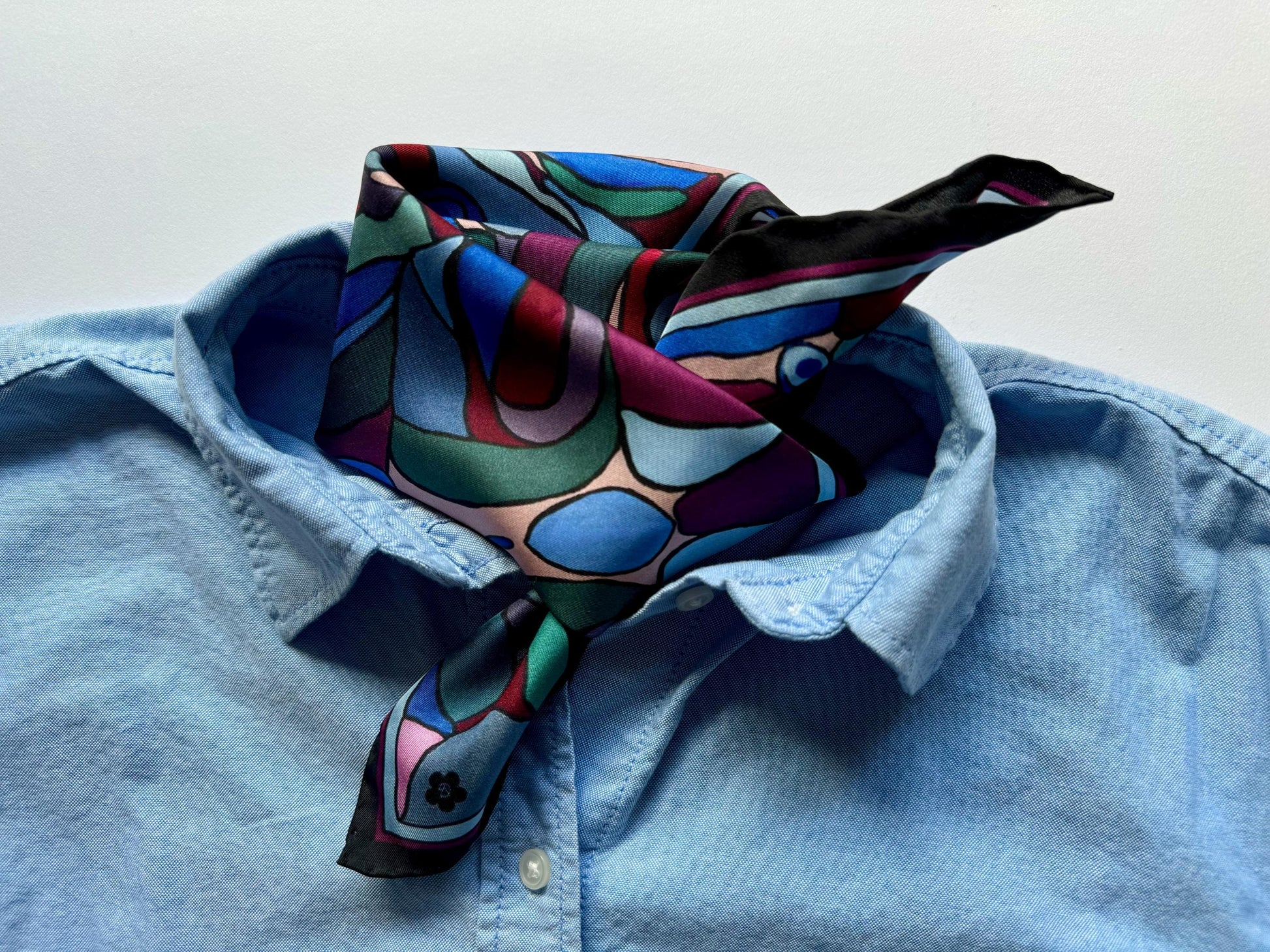 Knot it as a neckerchief, style it as a headband or decorate your bag with it —this scarf seamlessly blends modern charm with enduring elegance. Whether you're dressing up for a special occasion or infusing sophistication into your daily attire, this square silk scarf harmoniously merges expert craftsmanship with exceptional style.