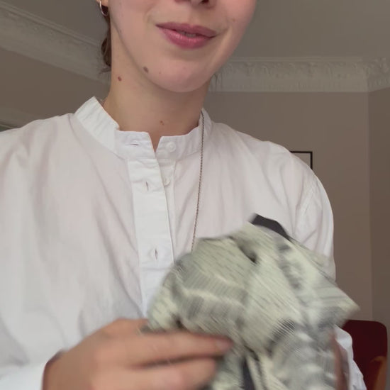 A warm hug for the winter season. Limited edition, unique pattern created by Valeria Gulieva. Double side print. Size 90x90 cm, 35% silk 65% wool. Available in two colors.