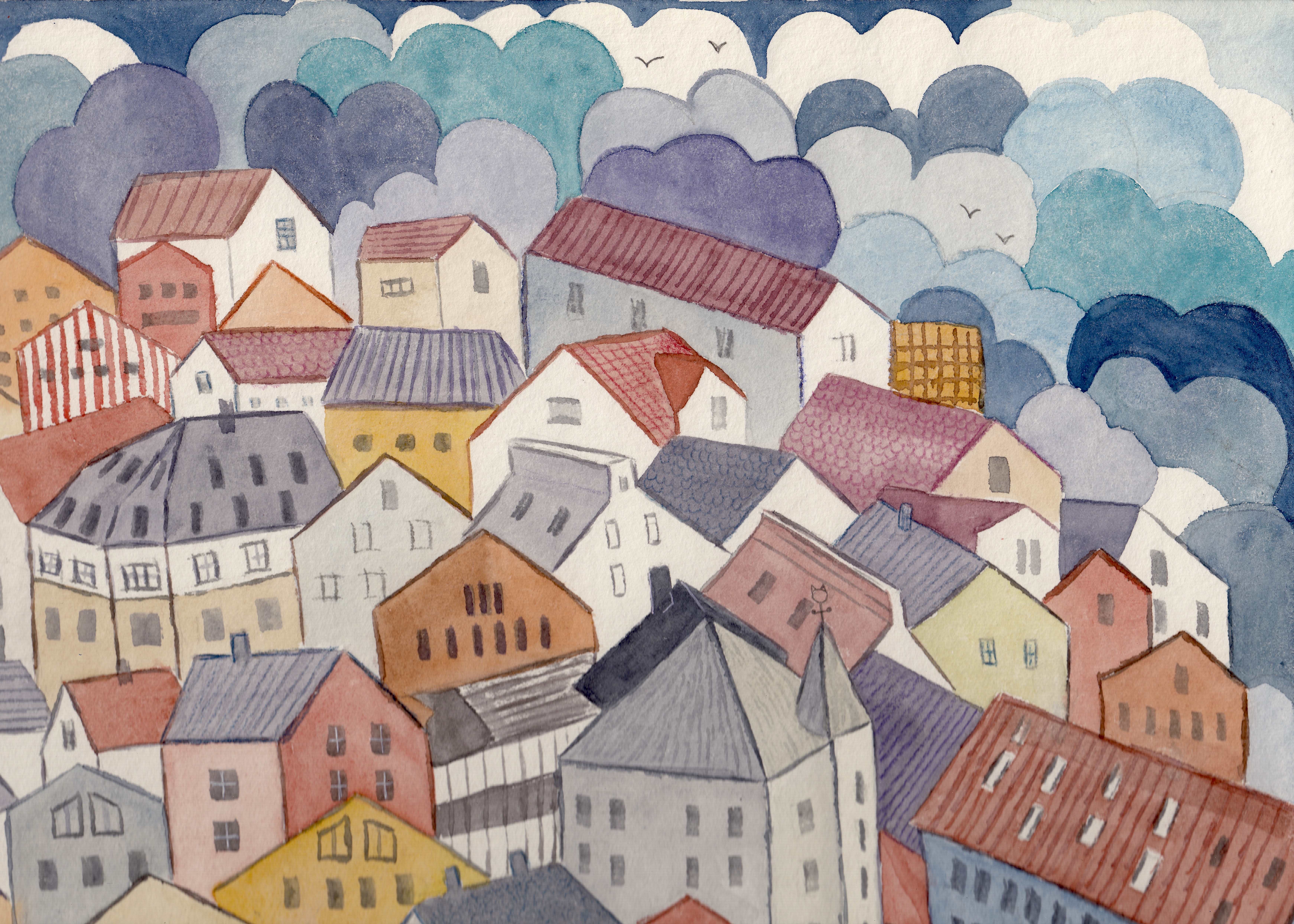 Scandinavia is my tribute to life in the north of Denmark. I never imagined myself living in a small town here, but the Scandinavian cityscape has truly grown on me. Aalborg’s old town—with its red brick buildings, figured spires, narrow streets, and rooftops forming patterns when seen from above—feels both grounded and fairytale-like, and it continues to inspire my work.