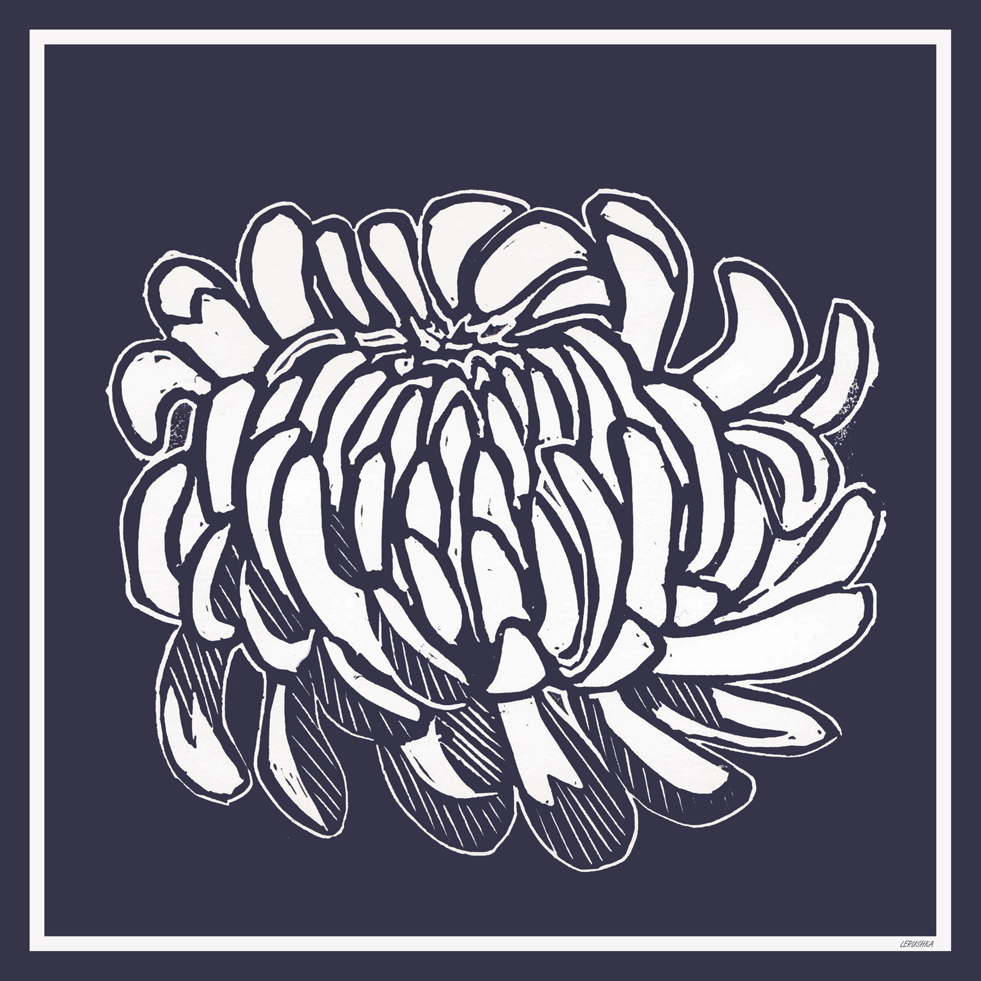 Flower Power is another nod to my linocut period, combined with my continuous admiration for Japanese art and aesthetics. The print features a single large chrysanthemum—its only subject and the centerpiece of the composition.